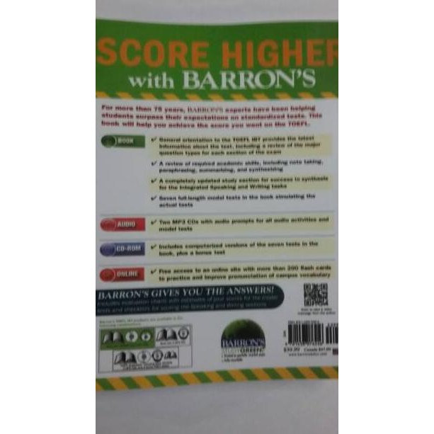 The fifteenth edition of barrons toefl ibt is available in options that include a book with two mp3 cds or book with two mp3 cds and cd rom. Barrons toefl ibt with cd rom and mp3 audio cds 15th edition. Jual beli online aman dan nyaman hanya di tokopedia. Jual barrons toefl ibt 15th edition with cd dengan harga rp195000 dari toko online toko buku toefl kab.