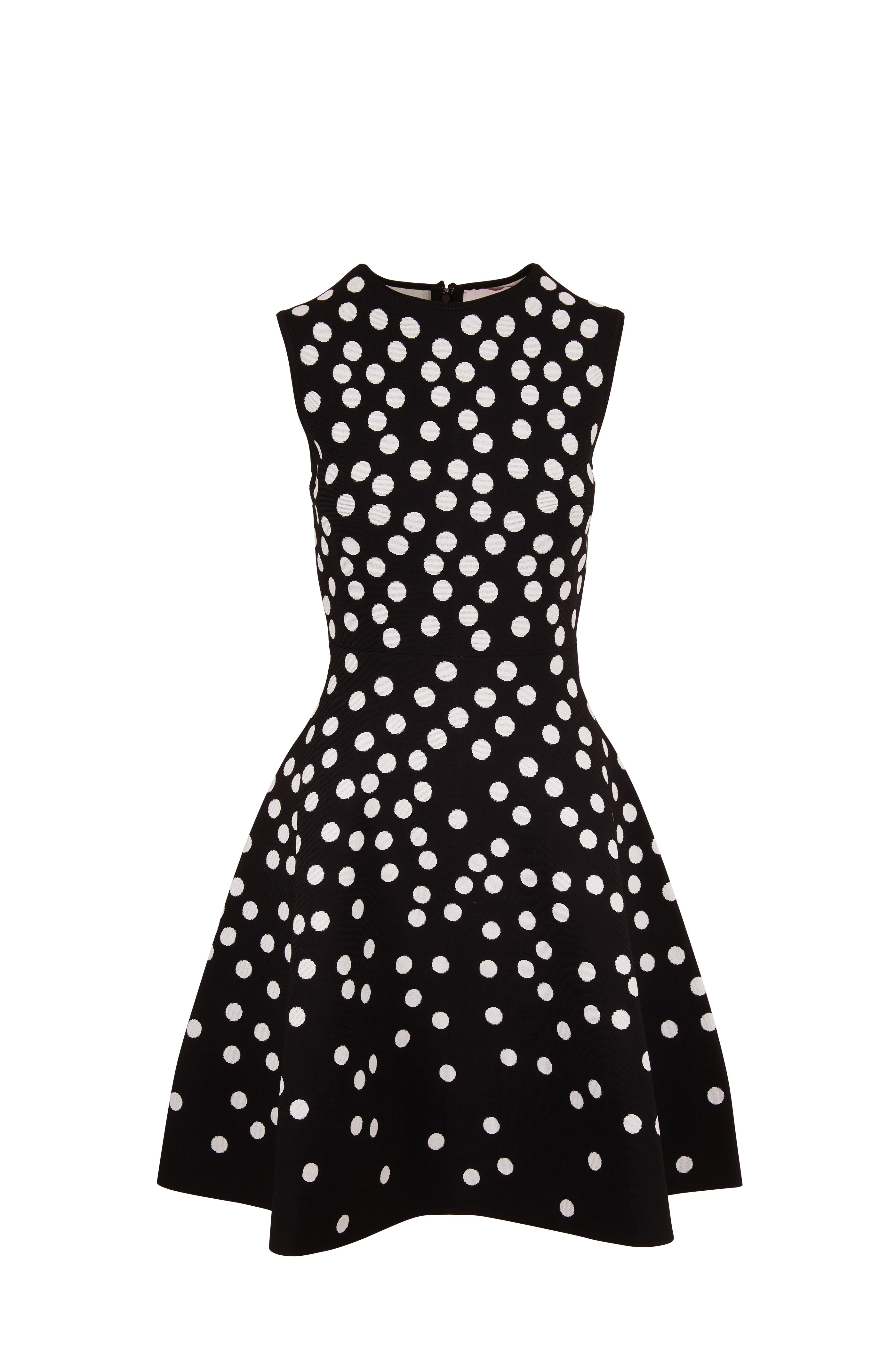 Carolina Herrera Black White Jacquard Dot Sleeveless Knit Dress Mitchell Stores