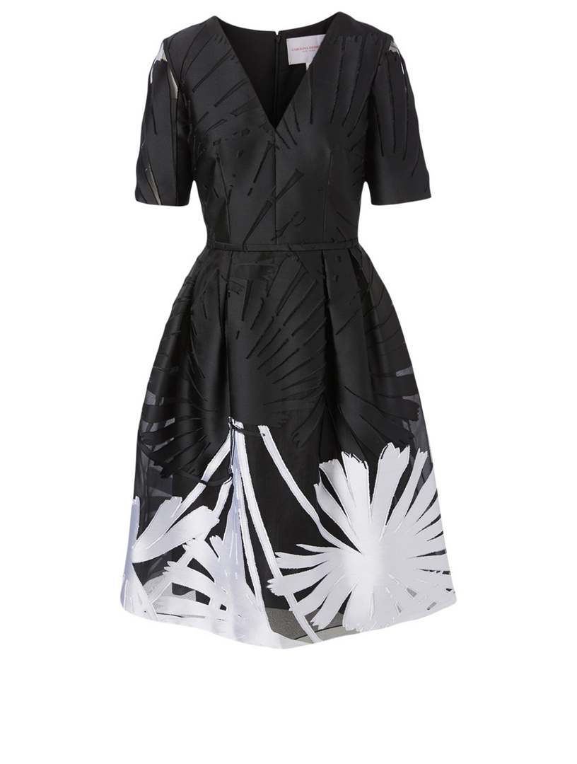 Carolina Herrera Floral Print A Line Dress In Black White Modesens