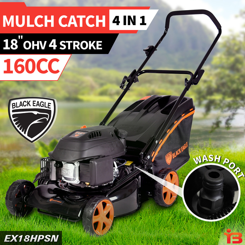 18 Inch Hand Push Lawn Mower 4 Stroke 160cc Black Eagle